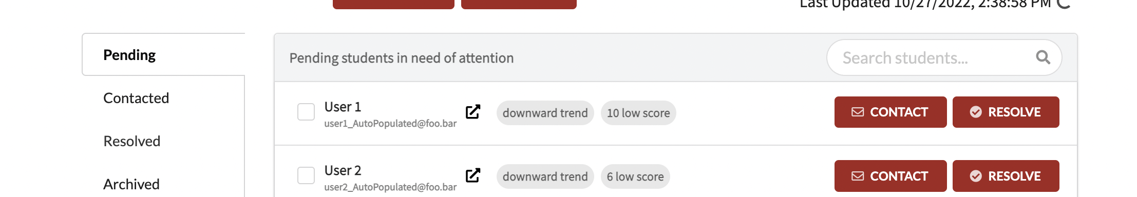 I then updated the conditions (change of metric conditions in the student metrics tab):