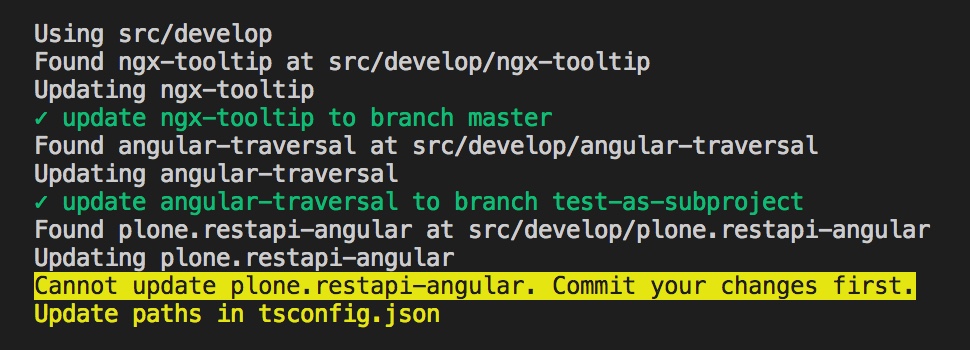 }By using the local property, we can declare a path that will be added in tsconfig.json (no repository will be pulled):
