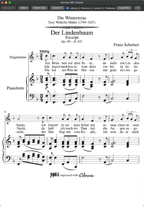 Verovio is written in standard C++20 and is available in several bindings (JavaScript, Python, Java, Swift, Go). It can be compiled as a standalone command-line tool or as a music-rendering library for applications. Check out the JavaScript toolkit version of Verovio running in the Verovio Online Editor / Viewer, or the tutorials to know more about web integration and user interaction.